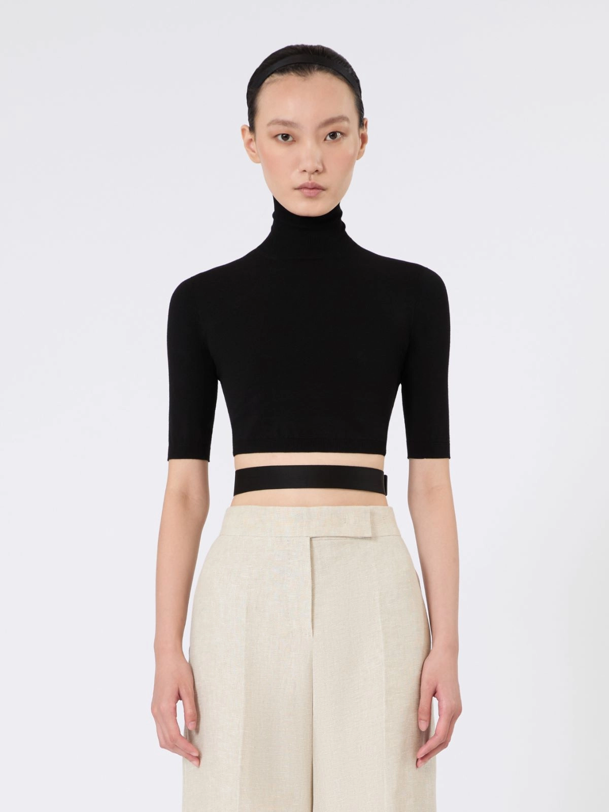 Cropped turtleneck jumper.