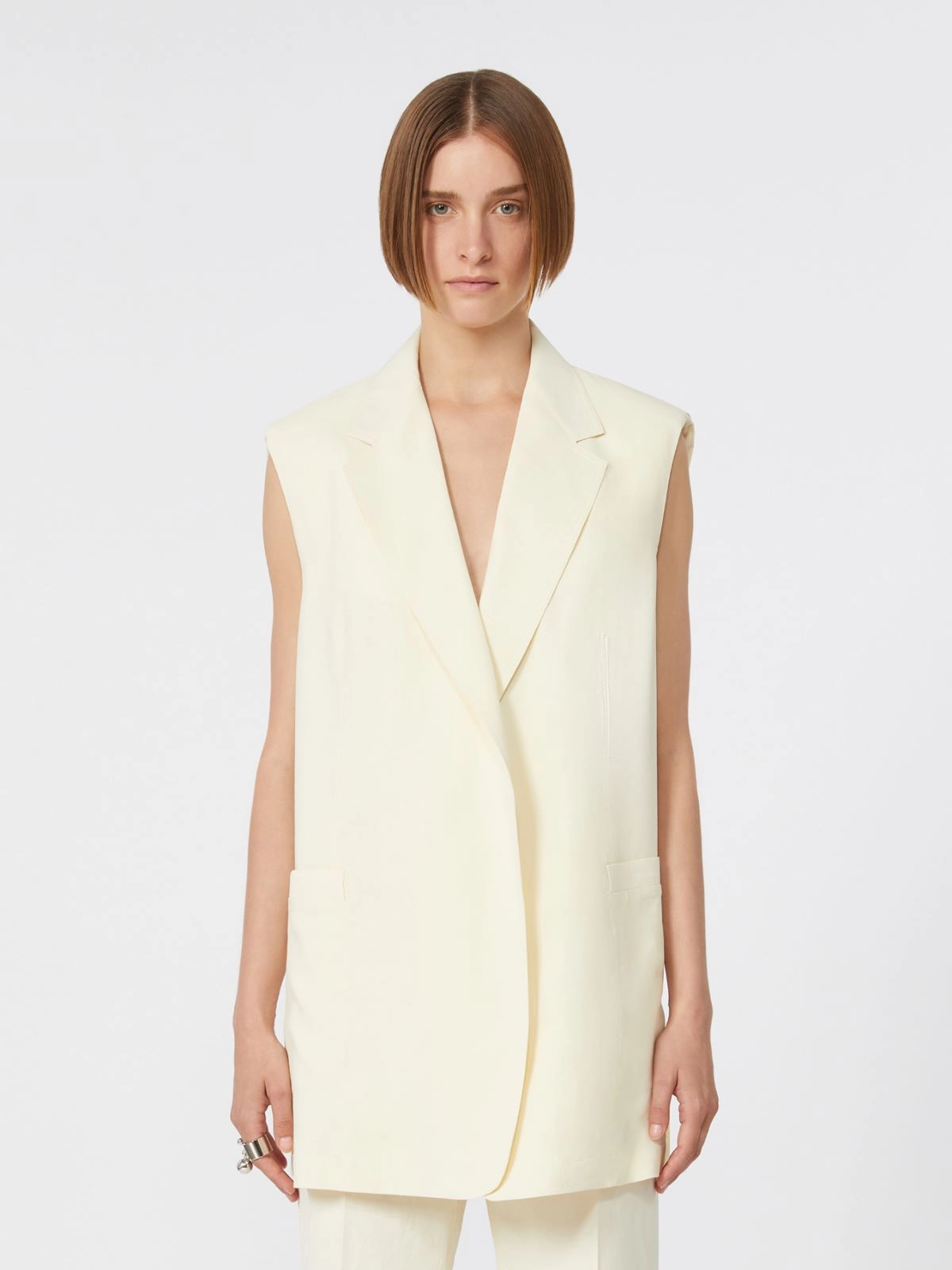 Oversized gilet in crisp-hand viscose canvas featuring a straight-cut bodice and visible topstitching. The open sides give rise to deep slits. Deep, overlapping slit at the back.